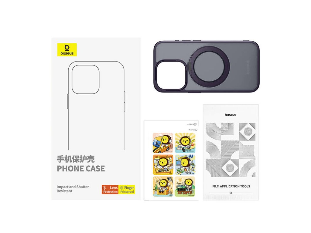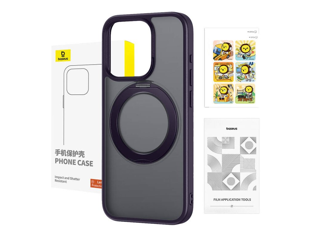 Baseus SkyRing Magnetic case with stand for iP 14 Pro Max + tempered glass and cleaning kit (purple).