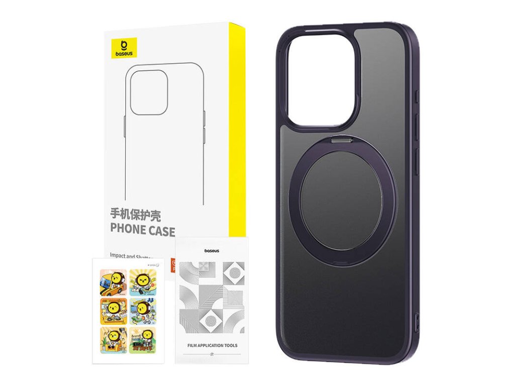 Baseus SkyRing 360° case with stand for iP 14 Pro + tempered glass and cleaning kit (purple).