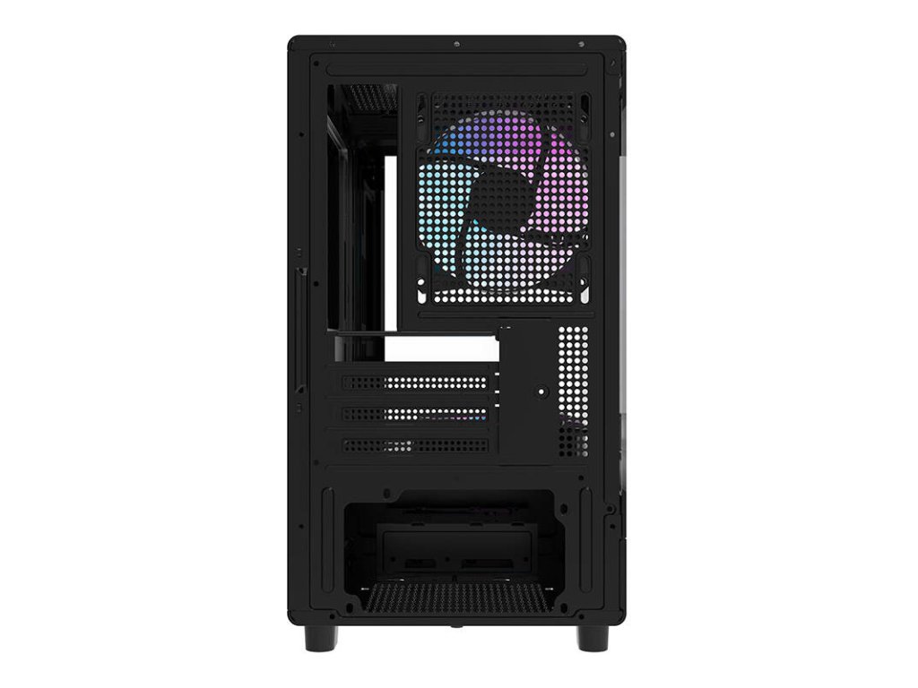 Skříň DB330M je vybavena třemi ventilátory ARGB, které nejenže zajišťují optimální chlazení, ale také skvěle vypadají. Díky nim můžete své sestavě dodat originální herní vzhled! Kromě toho jsou četné větrací otvory a vertikální vzduchové kanály zárukou optimálního odvodu tepla. Nebojte se, že by se váš počítač přehříval! Skříň navíc v závislosti na vašich potřebách pojme až 5 ventilátorů nebo vodní chlazení (240 mm nahoře a 120 mm vzadu).