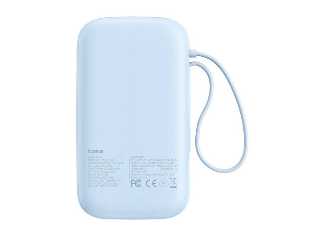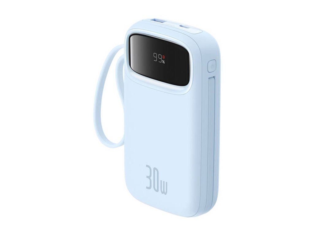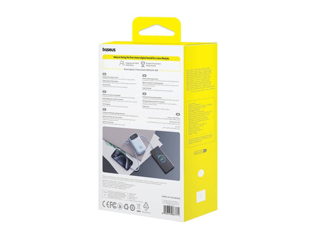 The powerbank is equipped with two USB-C ports, one USB-A port, and has a built-in USB-C cable. This is a solution that allows you to charge several devices simultaneously. Whether you need to charge your smartphone, tablet, headphones or other gadgets, the Baseus QPow 2 provides the versatility you need.