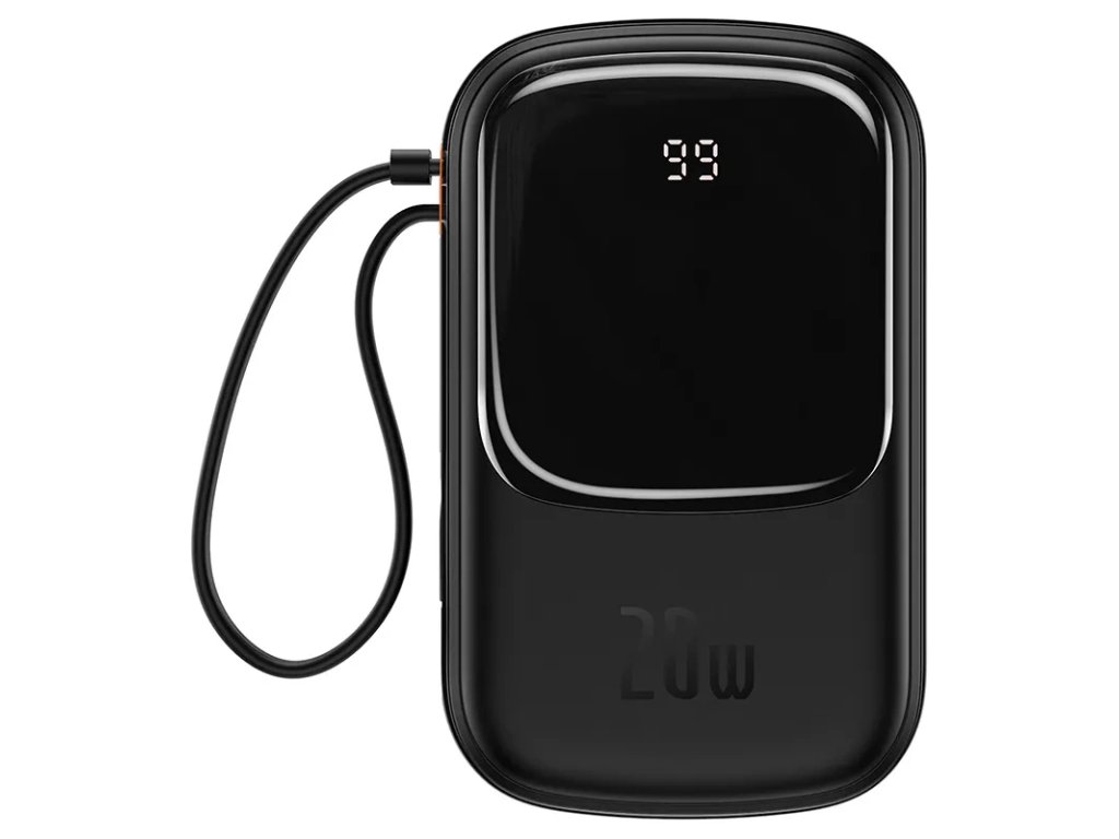 Powerbanka Baseus Qpow Pro s vestavěným kabelem Lightning má porty USB-C a USB, takže dokáže nabíjet až 3 zařízení najednou. Podporuje také protokoly rychlého nabíjení SCP, FCP, QC a PD a nabije Apple 13 na 50 % za pouhých 30 minut.