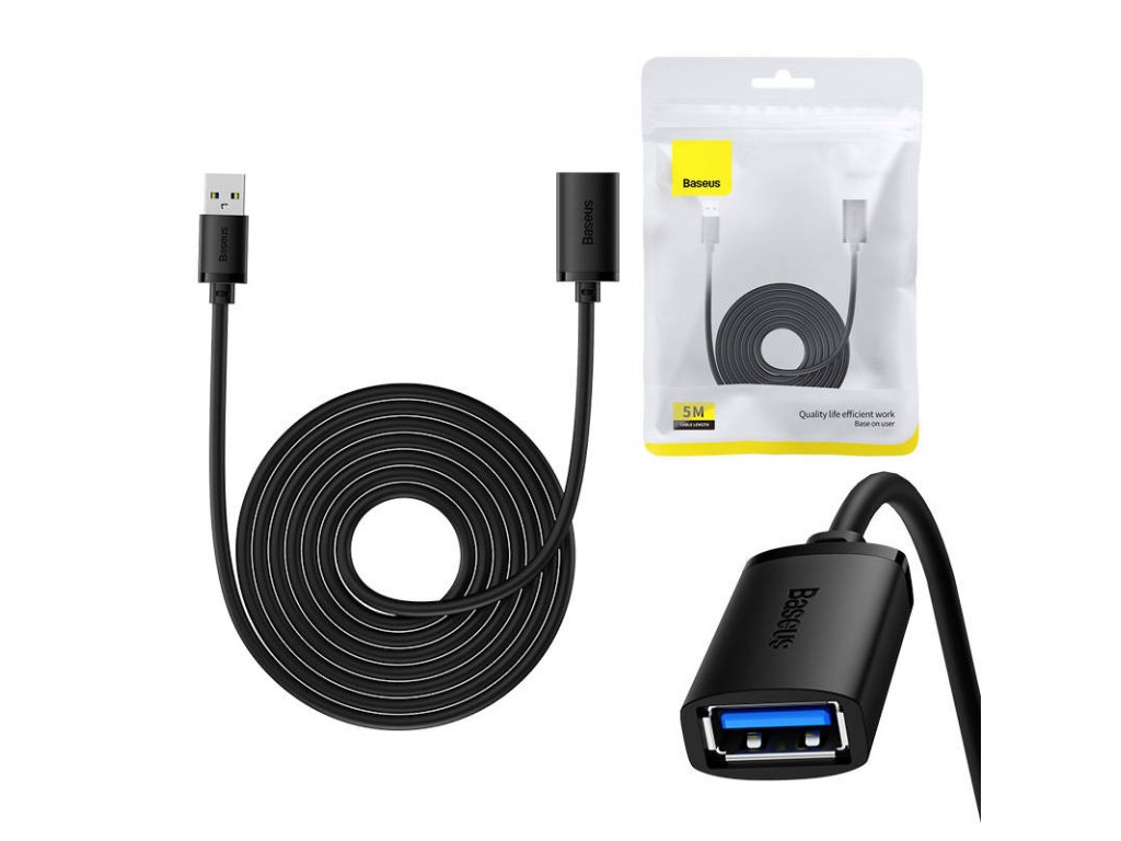 Prodlužovací kabel USB 3.0 Baseus samec-samice, řada AirJoy, 5 m (černý)