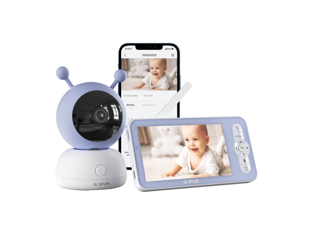 The Boifun 2S electronic nanny will help you take care of your baby's safety. With a 5-inch screen and the ability to operate via a mobile app, you can monitor your toddler from anywhere and even communicate with him. A 3,000 mAh battery ensures long battery life, while sound, crying, temperature and humidity sensors monitor your little one's surroundings, alerting you as soon as the need for your intervention arises.