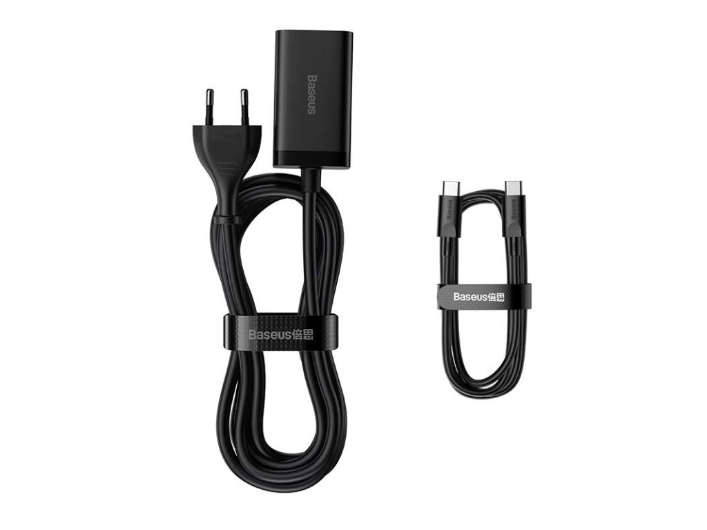 Tím však výhody nabíječky Baseus nekončí. Výrobek má integrovaný kabel, s jehož pomocí můžete CCGP040101 připojit přímo ke zdroji napájení. Jeho pevná konstrukce zajišťuje stabilní nabíjení a délka 1,5 m zase komfort při používání. Kromě toho sada obsahuje kabel USB-C na USB-C, který vám umožní připojit zařízení k nabíječce.