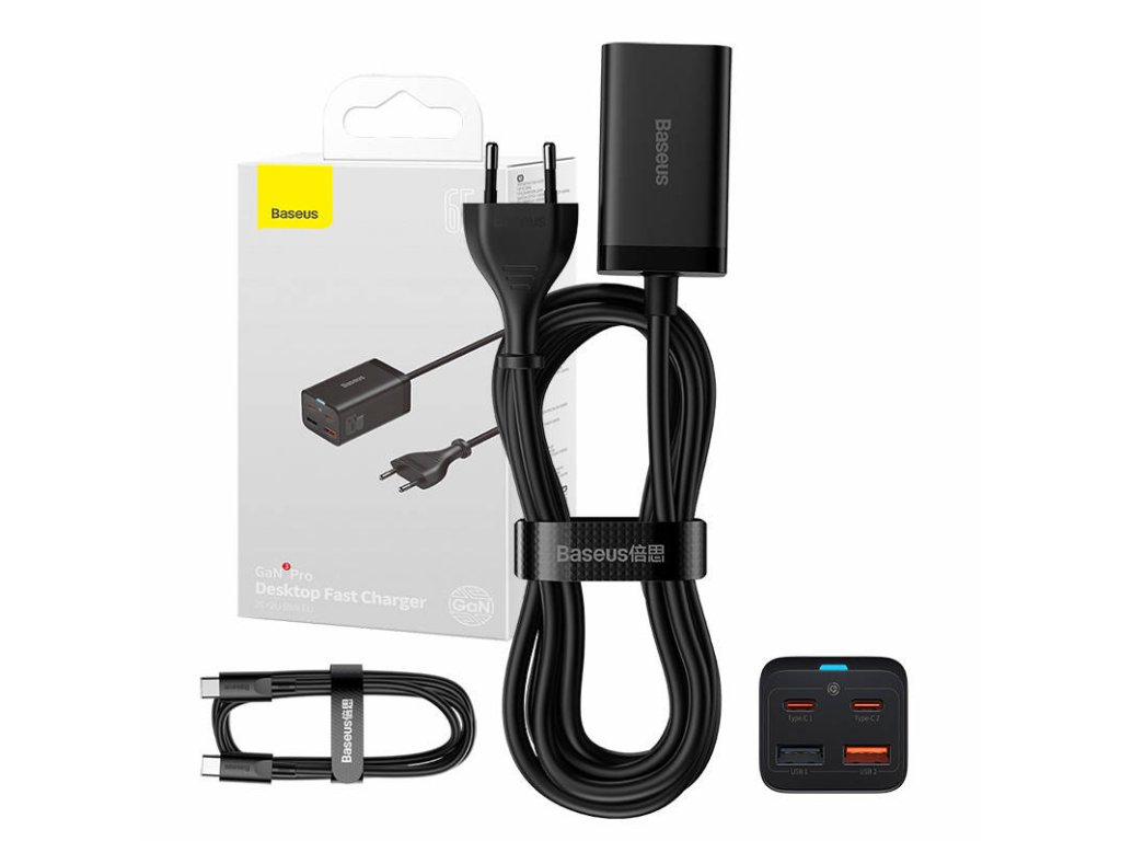 Rychlonabíječka Baseus GaN3 Pro, 2x USB-C, 2x USB, 65W (černá)