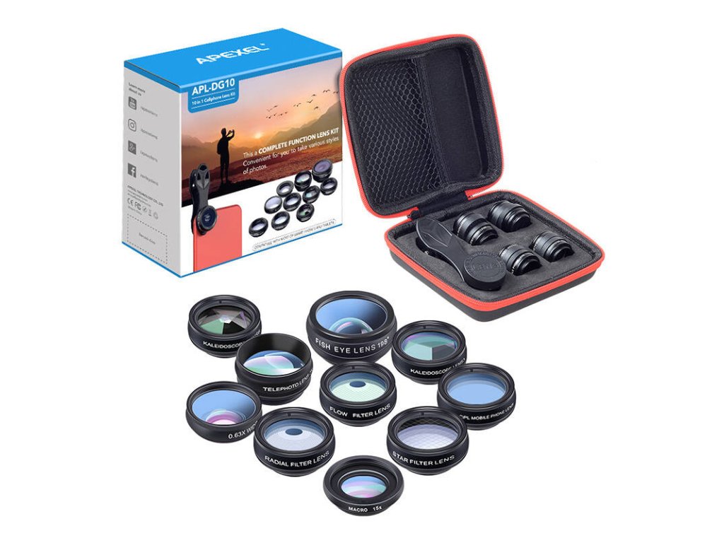 Objevte nový rozměr mobilní fotografie se sadou objektivů APEXEL APL-DG10 10 v 1. Tato všestranná sada je určena pro fotografické nadšence i profesionály a poskytuje bezkonkurenční kvalitu a kreativitu při každém snímku. Sada APEXEL vám umožní prozkoumat nekonečné fotografické možnosti vašeho chytrého telefonu - od úchvatných krajin až po detailní makrofotografii. Sada obsahuje řadu objektivů, včetně objektivů typu rybí oko, makroobjektiv, širokoúhlý objektiv a teleobjektiv, a také filtry, jako jsou CPL, hvězda a kaleidoskop, které dodají vašim fotografiím kouzlo a originalitu. Sadu doplňuje praktické pouzdro na objektivy, pouzdro na příslušenství a čisticí hadřík, což z ní činí dokonalého společníka na cesty pro každého fotografického nadšence.