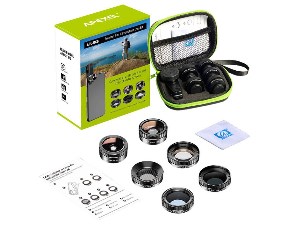 Sada APEXEL APL-DG6V2 6 v 1, navržená s ohledem na univerzálnost, nabízí výjimečnou kvalitu a přesnost při každém záběru. Díky široké škále objektivů, od širokoúhlých až po makro, si každý fotografický nadšenec najde něco pro sebe. ND a CPL filtry poskytují dodatečnou kontrolu nad osvětlením a barevnými efekty a zvyšují úroveň každé fotografie. Součástí sady je také praktické pouzdro a klip na objektiv, které zajišťují snadnou přepravu a rychlou změnu objektivu. Objevte pět klíčových funkcí, díky nimž je sada APEXEL APL-DG6V2 nepostradatelným nástrojem pro každého nadšence mobilní fotografie.