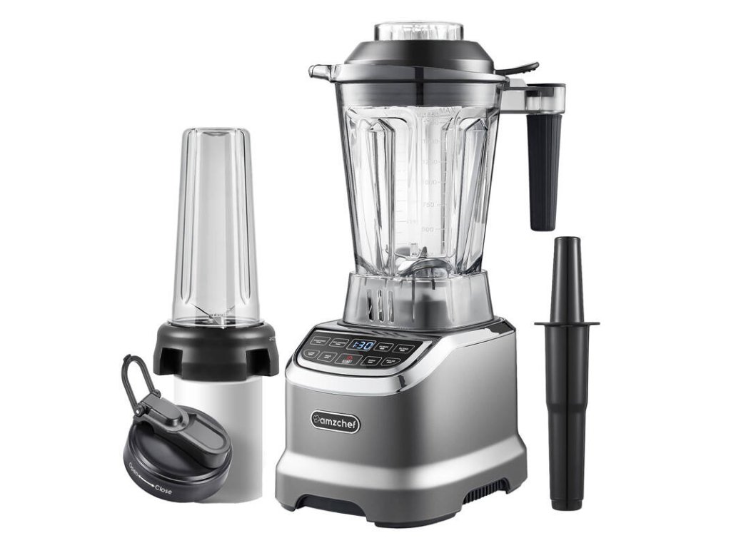 Šálkový mixér AMZCHEF ZM5003-GA nabízí působivý příkon až 1 800 W a objem 1,85 l, přičemž nože pracují rychlostí až 26 000 otáček za minutu. Snadno tak připravíte nejrůznější pokrmy a nápoje - od koktejlů a smoothie až po krémové polévky. Úspěšně také namelete obiloviny nebo maso. Přídavná láhev o objemu 600 ml vám umožní vychutnat si lahodné nápoje i mimo domov.