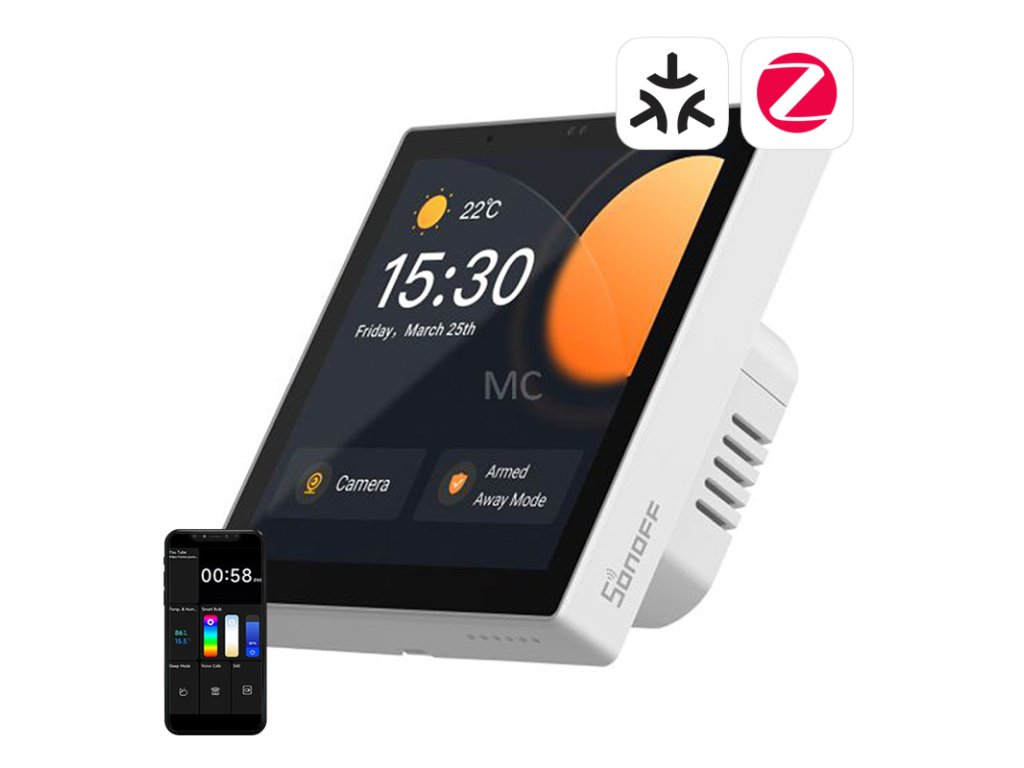 Nástěnný vypínač Sonoff vám umožní pohodlně spravovat vaši chytrou domácnost. Umožňuje ovládat světla, senzory, teplotu, kameru atd. Upozorní vás také, když se někdo vloupá do vašeho domu. Výrobek spolupracuje s aplikací Home Assistant a podporuje připojení Wi-Fi a Bluetooth. Skvěle se bude hodit pro každodenní použití jako časovač nebo budík, upozorní vás také, když někdo zazvoní u dveří.
