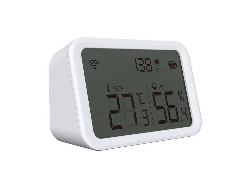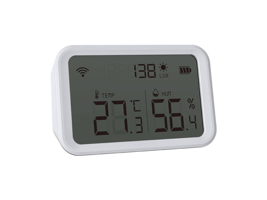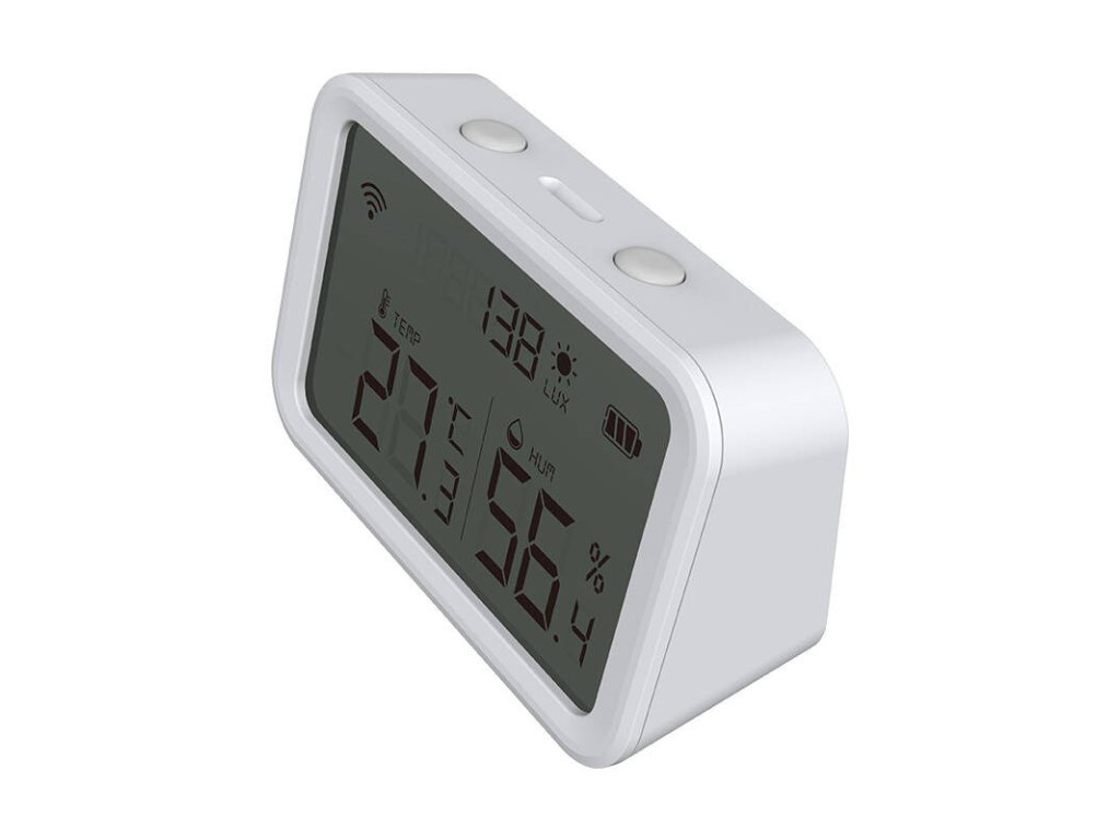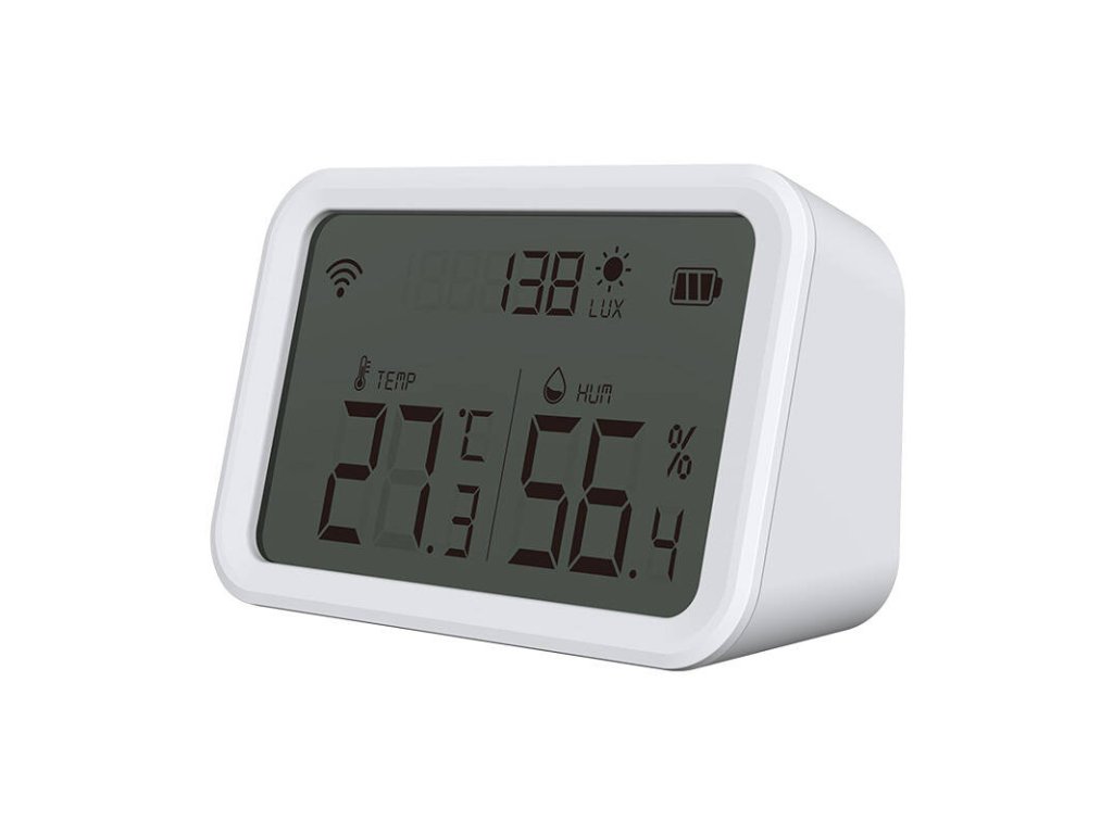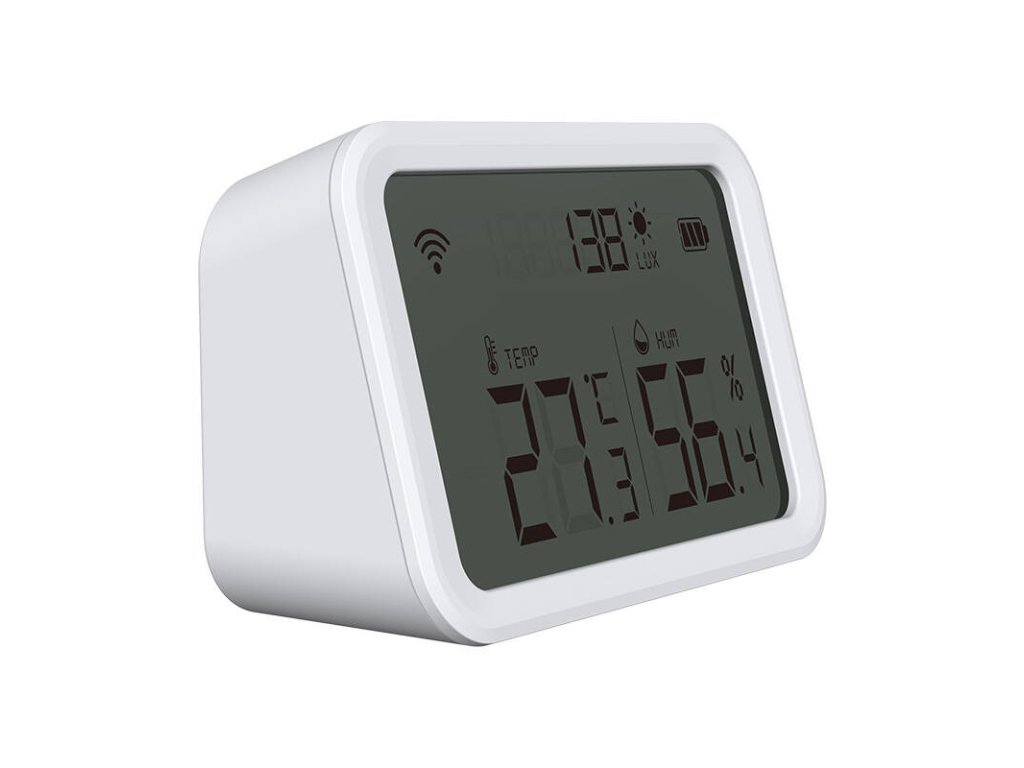 Snímač můžete úspěšně namontovat na zeď nebo jej umístit na jakýkoli rovný povrch. Indikátor LED zobrazuje provoz zařízení, které spolehlivě funguje ve dne i v noci. Snadná konfigurace přes Wi-Fi pomocí aplikace Tuya Smart usnadňuje používání. Přehledný displej zařízení navíc poskytuje informace o teplotě, vlhkosti a úrovni osvětlení v reálném čase.