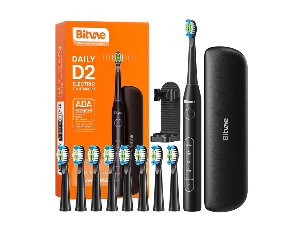 Váš úsměv může být ještě zdravější a krásnější! Sonický zubní kartáček odstraní z vašich úst až 7krát více nečistot než tradiční zubní kartáček! Bitvae D2 nabízí 5 režimů čištění, kdy vám chytrý časovač každých 30 sekund připomene změnu čištěné oblasti. Stupeň krytí zařízení je IPX7 a vydrží až měsíc! Kartáček je navíc doporučen Americkou dentální asociací. V sadě najdete až 8 vyměnitelných špiček - zásoba, která vám vystačí na 2 roky!