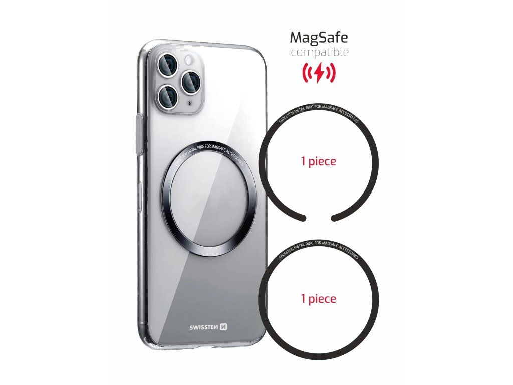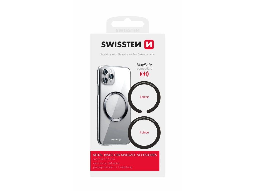 Sada samolepicích kovových kroužků pro kompatibilitu s nabíjením MagSafe. Dodáváno v maloobchodním balení od SWISSTEN. Bezdrátové nabíjení pomocí MagSafe nabíječe je velmi jednoduché. Perfektně umístěné magnety připevní a umístí nabíjecí oblast nových modelů iPhonů 12 a 13. MagSafe udržuje kompatibilitu s nabíjením Qi, takže lze použít pro nabíjení iPhonu 8 a novějších modelů a také pro smartphony dalších značek, které podporují bezdrátové nabíjení. Použití kovových destiček umožňuje smartphonům s bezdrátovým nabíjením využívat nabíjení MagSafe. Stačí přilepit kovovou destičku na váš smartphone nebo na vnější stranu pouzdra do místa, kde má smartphone bezdrátové nabíjení. Poté můžete svůj smartphone jednoduše připojit k nabíječce MagSafe. Kožené a hrubé pouzdra nejsou vhodná pro přilepení kovových destiček.