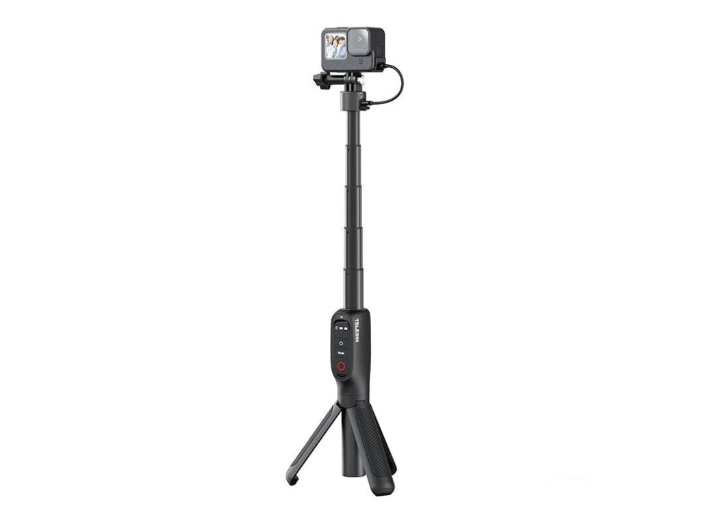Designed specifically for GoPro Hero 12, 11, 10, 9 and MAX cameras, the tripod is an innovative accessory that combines the functions of a selfie stick and tripod in one. With the built-in remote control, you can conveniently record videos and take photos. The 5,000 mAh battery provides up to 6 hours of use when recording in 4K@30fps quality, giving you the freedom to use the camera without worrying about drainage.