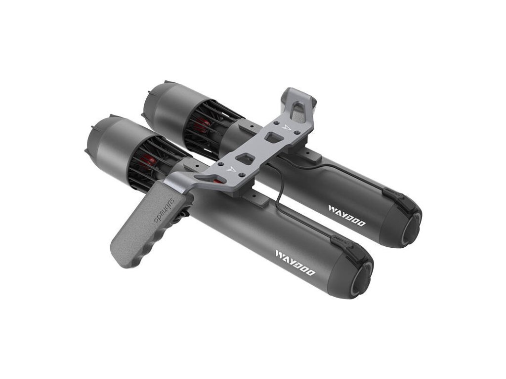 Dvojitý držák Waydoo je inovativní příslušenství, které umožňuje používat dva podvodní skútry současně. Díky němu můžete zdvojnásobit své možnosti a užívat si maximální rychlosti až 2 m/s. Toto řešení je ideální pro ty, kteří chtějí ještě více adrenalinu a chtějí prozkoumávat podvodní světy neuvěřitelnou rychlostí. Díky kombinaci dvou podvodních skútrů je manévrování ještě přesnější a podvodní dobrodružství ještě vzrušující.
