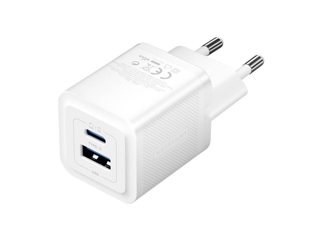 Wall charger, Vention, FEQW0-EU, USB-C + USB- A, 30W/30W , GaN (white)