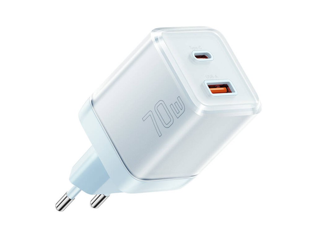 Yueqi 70W GaN USB-C + USB-A Power Charger (blue).